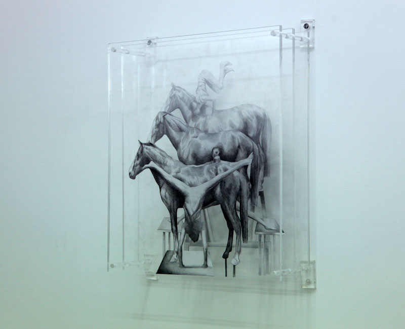 “The Single Player Game“ series, pencil, tracing paper and plexiglass, 42x36x10 cm / 16x14x4 in, 2015